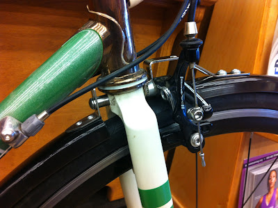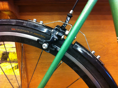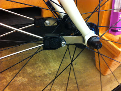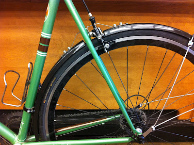The other day Chris DiStefano brought in his Cielo asking for me personally to put fenders on it. Seeing as how we live in Portland it is kind of essential. If he didn’t this bike would sit in a garage while it rained for the next 7 months. The only problem is there were no eyelets to mount the fenders to and CD said it was to look clean. No zipties.