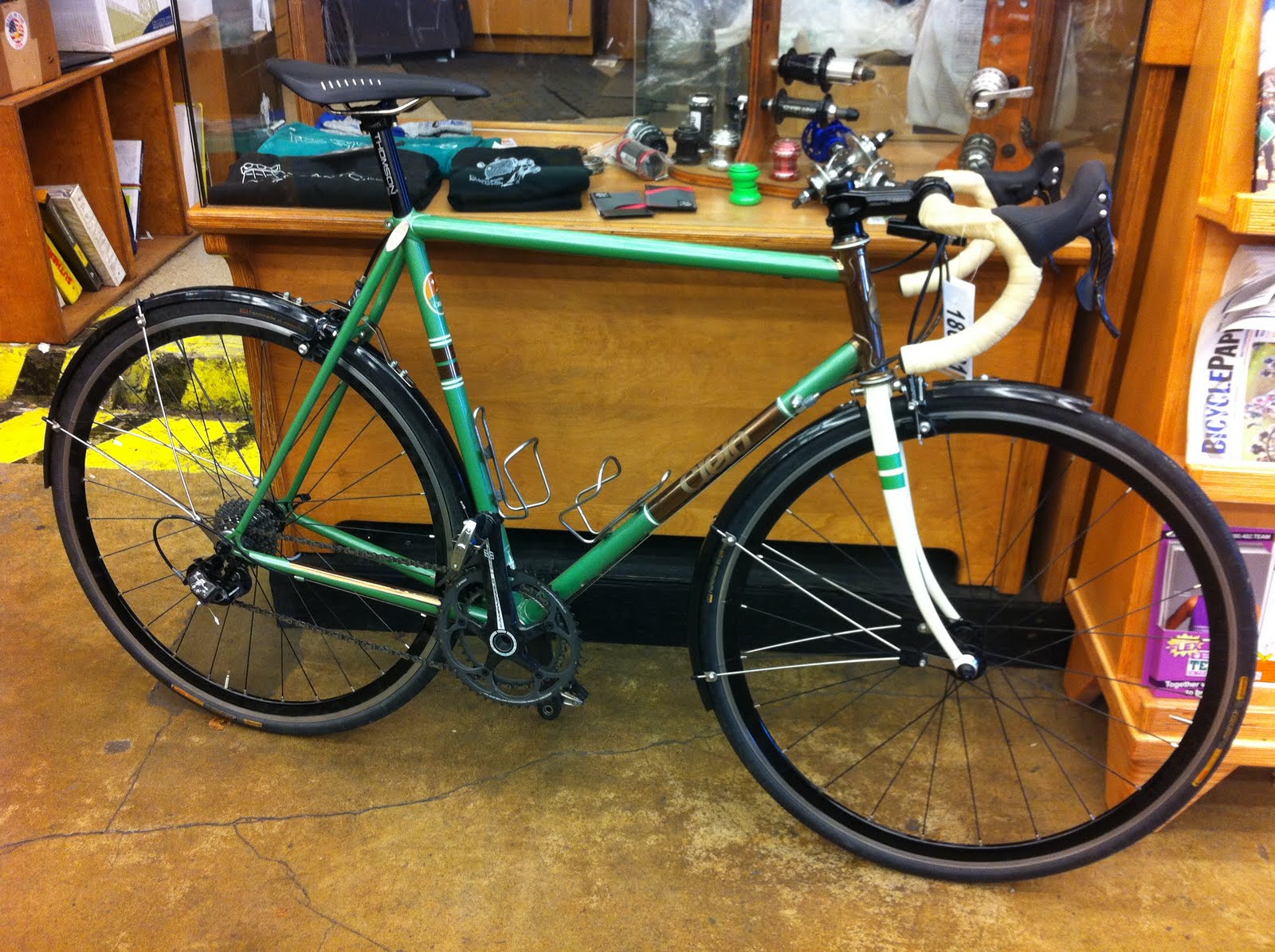 Yes, the frame was a surprise gift so please stop shaking your head. It was built purely for the road and not as a daily commuter. It’s a wonderful bike and one I like so much I chose to enlist my pal Amanda to help keep it on the road through the winter. No need for peeves, there can be lots of different bikes for lots of different people. This one is mine and I enjoy every detail of it.