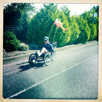 I was surprised to see how many people who were just out riding their bikes on the race course…. especially since there was a bike path that ran parallel to it. Although, I wish this guy was racing and I wish he would’ve won. Nice flags.