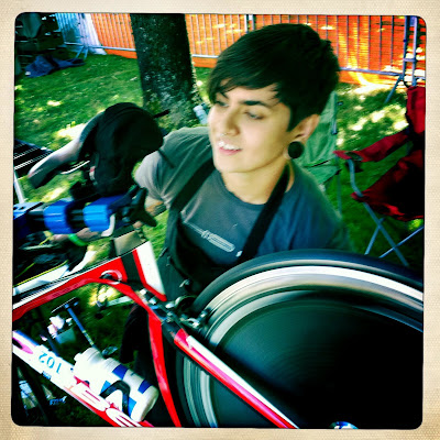 Day two of my first experience being a race mechanic and it was rad… my head might explode. Today was neutral support so after last minute adjustments before the race started, we headed out in the car and drove up and down the course looking for people who were broke down on the side of the road. We would stop and fix their problem and they could continue their race. It was a half Ironman meaning we were out there for awhile. It was a lot of fun and I know it’s something I want to do again. Fo sho. It’s really exciting to do something that I love to do so much and in the same time help someone continue their race. You kind of form a bond with that person and you get to cheer them on every time you pass them. I think I’m in love….