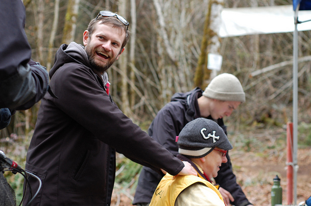 Giving back rubs to OBRA officials is one of the many ways Kyle was able to help this race operate smoothly.