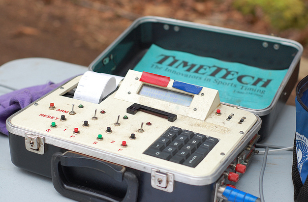 Petr Kakus (left) was the guy in charge of keeping time. It was the same kind of system used in some skiing downhill slalom races. Legit.
