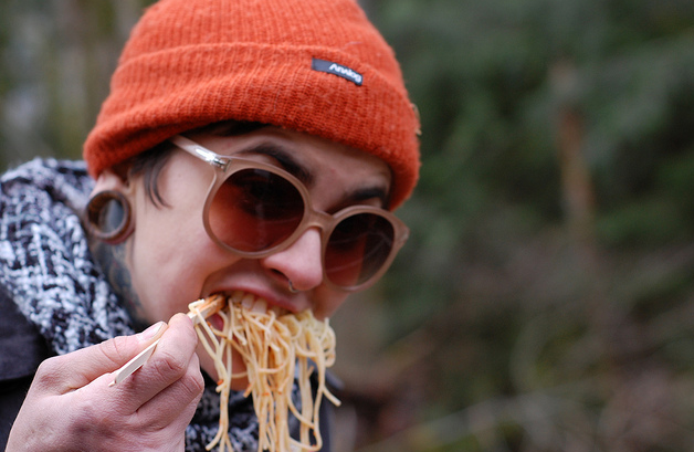 I forgot to bring a fork so I had to carbo load with my coffee stir sticks.